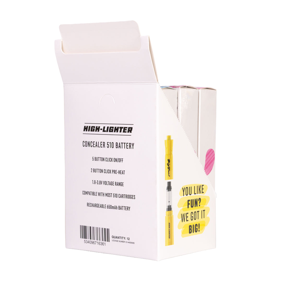 The Big Fun High-Lighter 510 Concealer Battery delivers reliable performance in a playful, highlighter-inspired design for added discretion. Styled to resemble a classic marker, this compact device blends novelty appeal with dependable functionality.