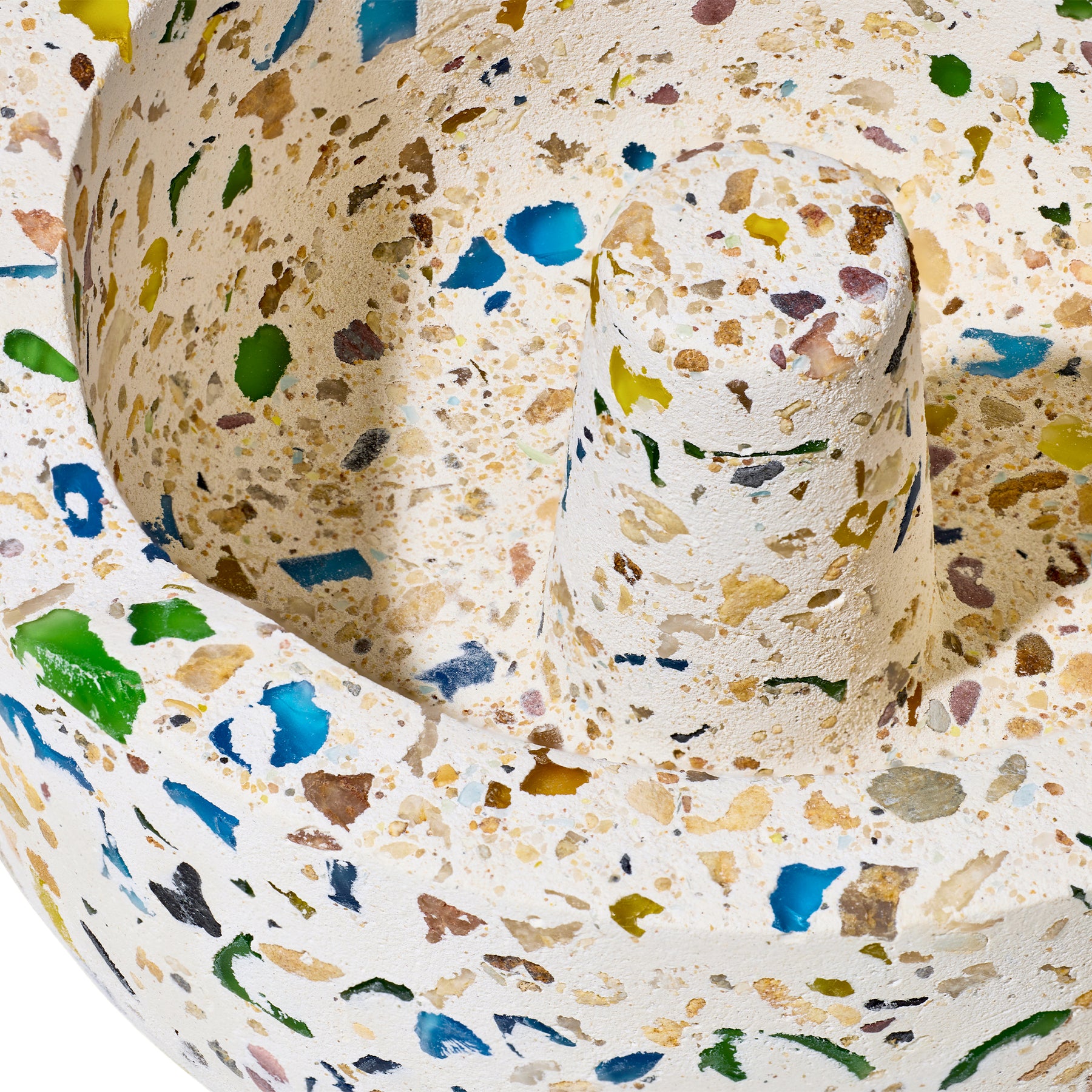 - Hand-poured terrazzo concrete base with recycled glass