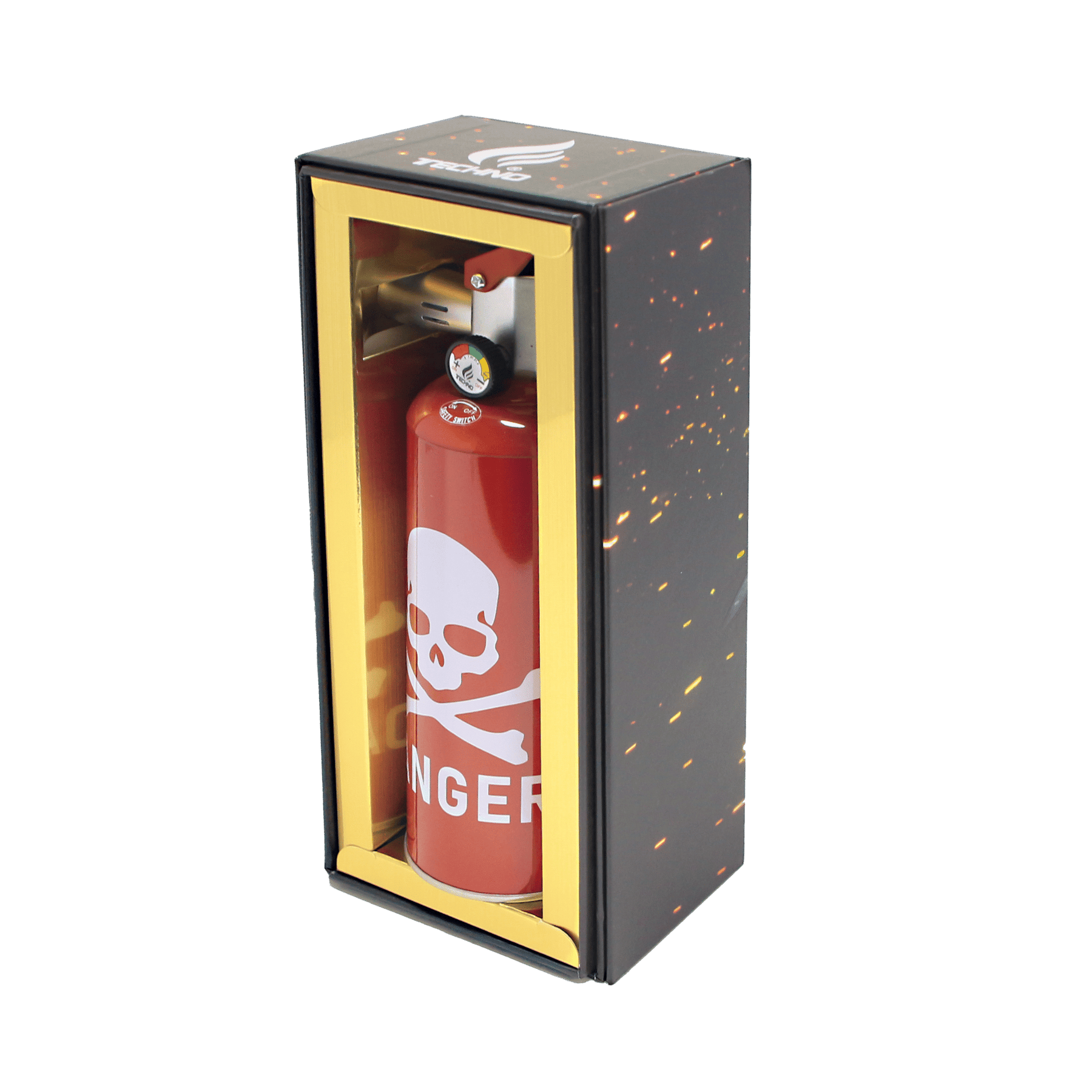 The Techno 8.5″ Fire Extinguisher Torch Lighter is a novelty torch lighter designed with a bold extinguisher-inspired aesthetic. Featuring a mock pressure gauge, flame control, and trigger-style ignition, this lighter combines eye-catching design with reliable performance. Packed in a full-color gift box with high-contrast graphics and “DANGER” branding, it makes a standout accessory for retail display, collectors, or anyone looking to offer unique smoking accessories.