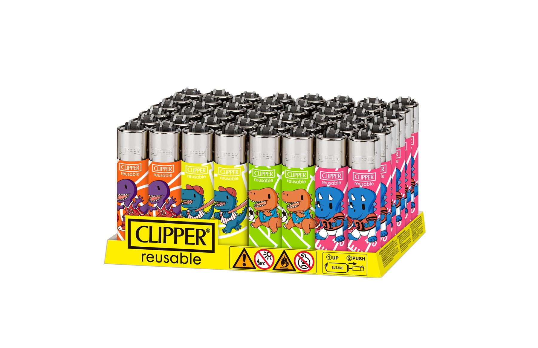 Choose one of four Clipper lighters with Dino Sports inspired designs. Each lighter comes with a packing tool for your pre-rolls.
